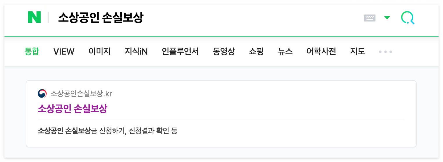 1. 검색사이트에서 '소상공인 손실보상'을 검색한 후 사이트에 접속합니다.