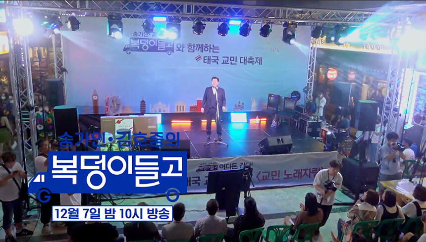 송가인・김호중의 특급 역조공 프로젝트 '복덩이들고(GO)'가 김호중의 노래로 태국 교민들에게 위로의 메시지를 전했습니다. 김호중은 방콕의 무더운 날씨 속에서도 온몸을 땀으로 적시면서 열창을 했다고 합니다.