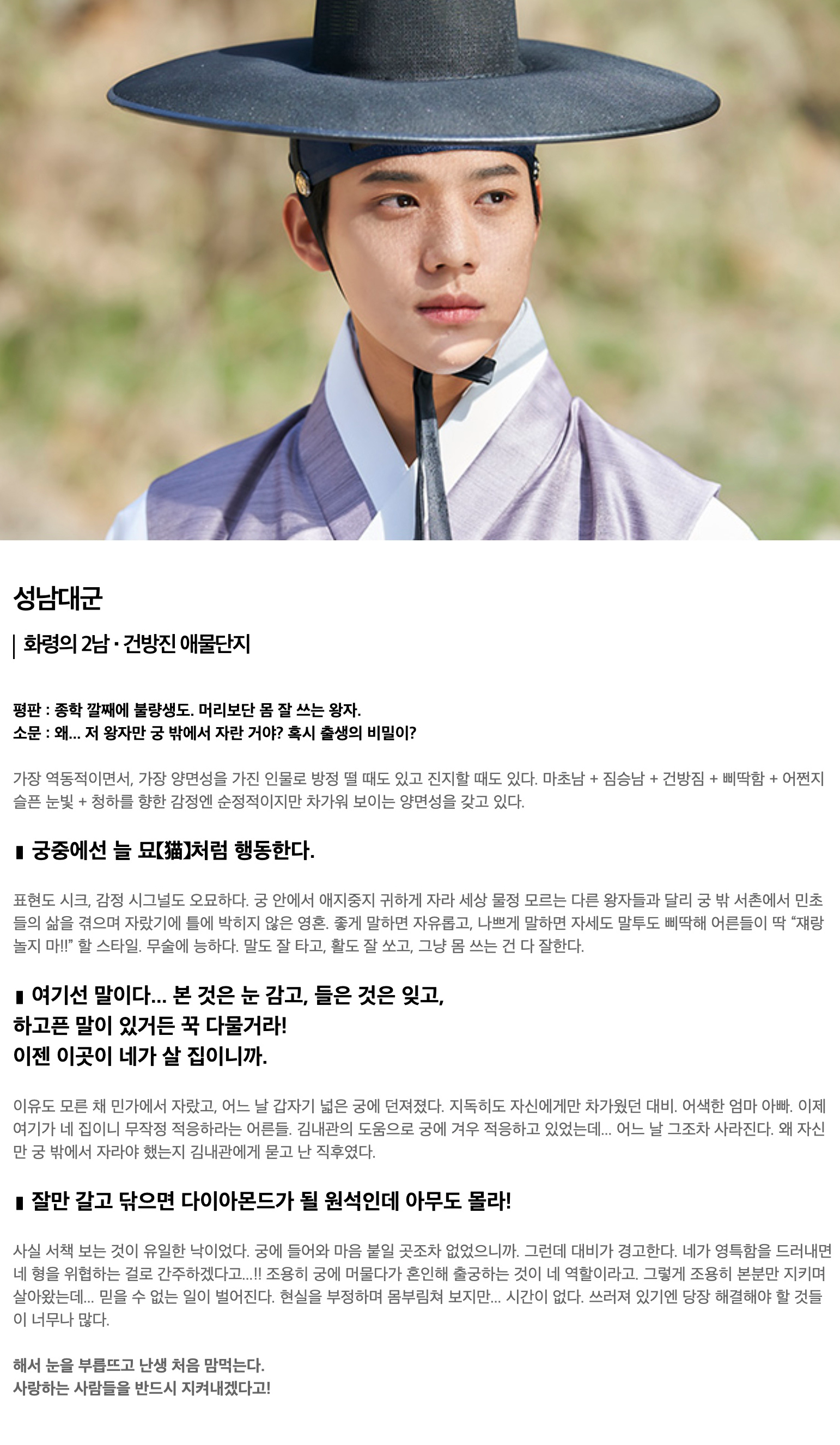 슈룹이 매주 화제가 되고 있습니다. 슈룹에는 중전 역할의 김혜수와 꽃미남 왕자들이 등장하는데 그중에서도 성남대군의 인기가 요즘 매우 높습니다. 성남대군 역할의 문상민 배우에 대해 한번 알아보겠습니다.