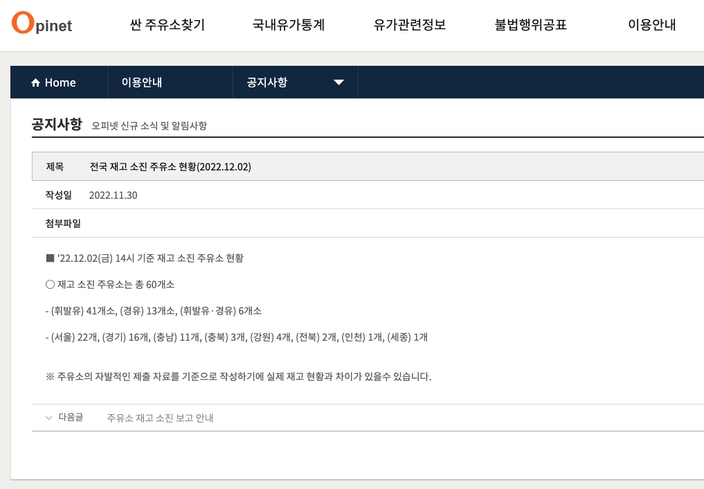 서울과 인천 등 수도권 중심으로 품절 주유소가 늘어나고 있으며 점차 지방으로 확산하는 추세라고 합니다. 대부분 주유소 내 저장 공간이 최대 1~2주치로 파업이 길어질수록 기름 부족 사태 본격화는 불가피할 것으로 보고 있습니다.