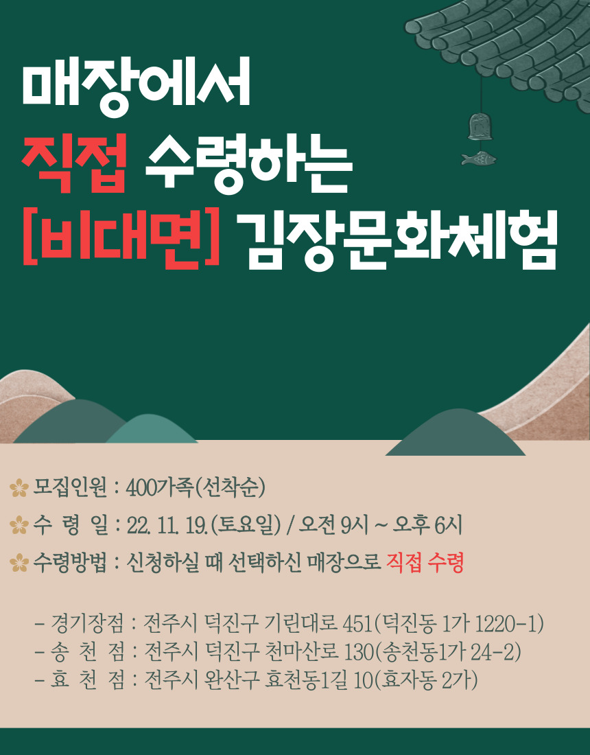 2022년 전주김장문화축제는 매장에서 직접 수령하는 [비대면]김장문화체험 입니다.