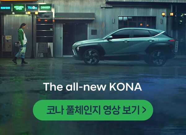 코나 풀체인지의 미래지향적인 디자인을 영상으로 만나보세요